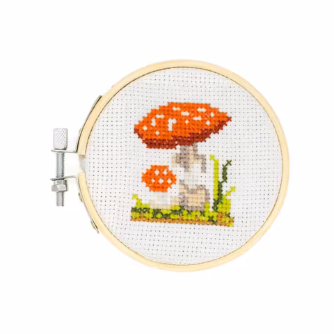 Ett komplett kit för att göra ett korsstygnsmotiv med svampar. Kul för såväl stor som liten och lätt för nybörjare.
